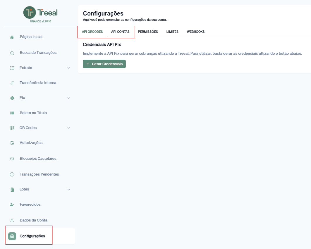 - Navigate to "API QRCodes" and "API Accounts" to create or manage your credentials.